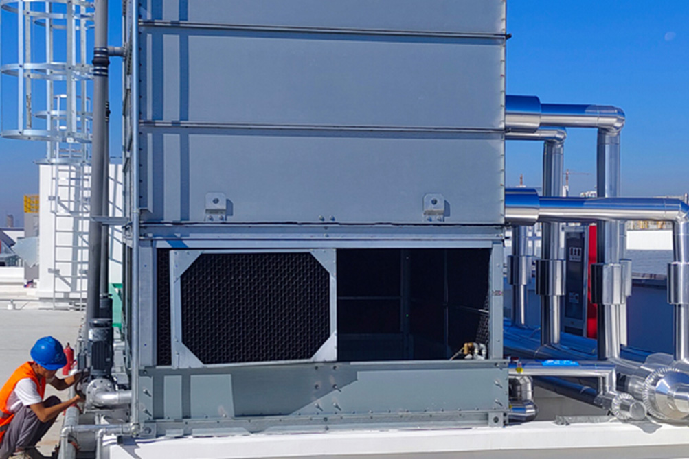 防凍:在寒潮期間,環(huán)境溫度可能會很低,導致設備出現(xiàn)凍結、凝固、析出結晶等現(xiàn)象。因此,需要確保設備在寒潮期間保持適當?shù)臏囟?,避免超出正常工作溫度區(qū)間,對于正在使用中的設備,需要開啟循環(huán)水塔或冰水機的電輔助加熱功能,配有散熱風扇調(diào)節(jié)器的循環(huán)水塔,可以調(diào)節(jié)水塔的散熱扇的開啟溫度,另外,為了降低循環(huán)冷卻水的凝固點,可在循環(huán)的水路中添加適量的乙二醇或防凍液,一般按量添加約35%即可。
